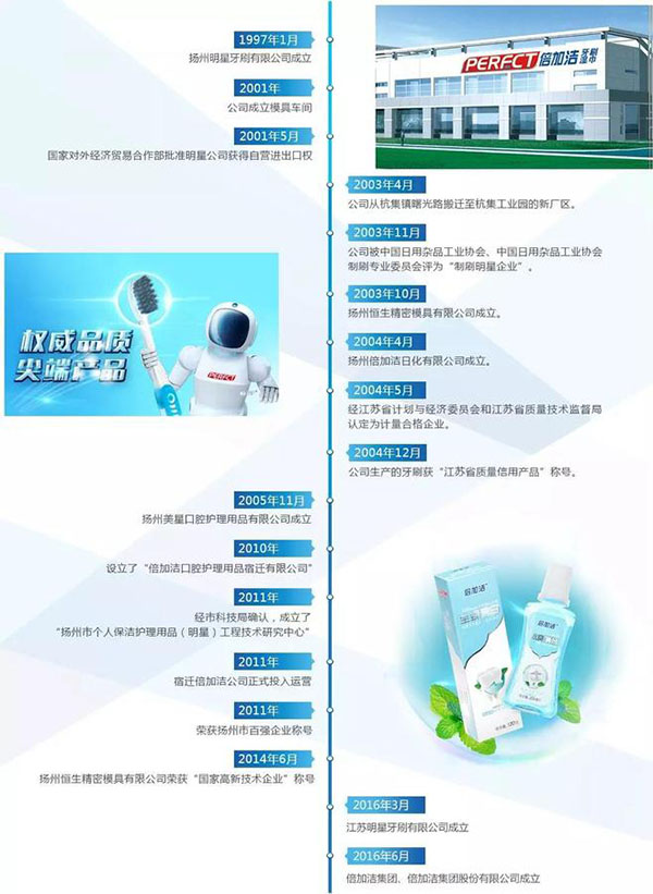 倍加潔集團股份有限公司主要從事口腔清潔護理用品以及一次性衛生用品的研發、生產和銷售,其中口腔清潔護理用品主要包括牙刷、牙線、齒間刷、牙線簽、假牙清潔片等產品,一次性衛生用品主要包括濕巾等產品。