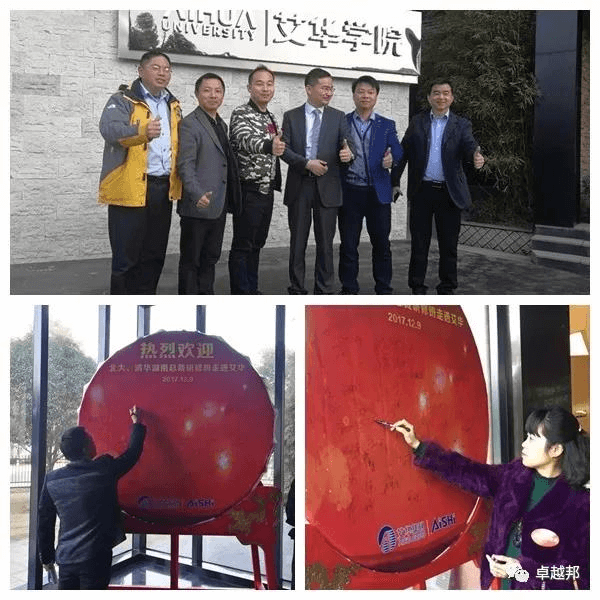——艾立華董事長與湖南企業聯盟代表2017屆北大班班長周志、三屆老學員代表魏翔共同為湖南企業聯盟學習基地揭牌